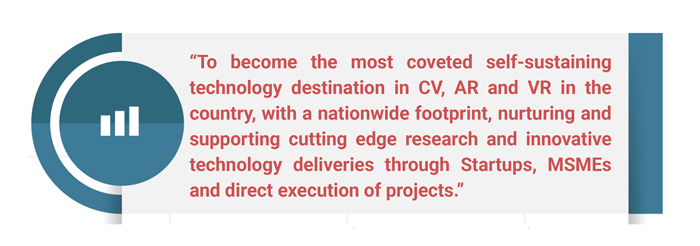 The TIH on Computer Vision and Augmented and Virtual Reality (CV and ARVR), named as iHub Drishti, will: (i) focus on advancing the research outcomes in core problems related to CV and, ARVR, (ii) augment imaging with additional (multimodal) sources of input such as haptics, language, and IoT to advance state-of-the-art in the domain areas, (iii) create technology solutions for socially relevant and industry-facing problems, (iv) support and nurture start-up ecosystems, (v) stimulate skilling and reskilling educational programs, and (vi) to advise governments for appropriate policy-related matters in the domain of CV and ARVR.